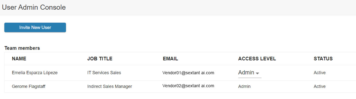 Input the email address, set the access level, and specify if the individual is to be a buyer or a supplier in using Sextant AI. Then click “Send Invite”.