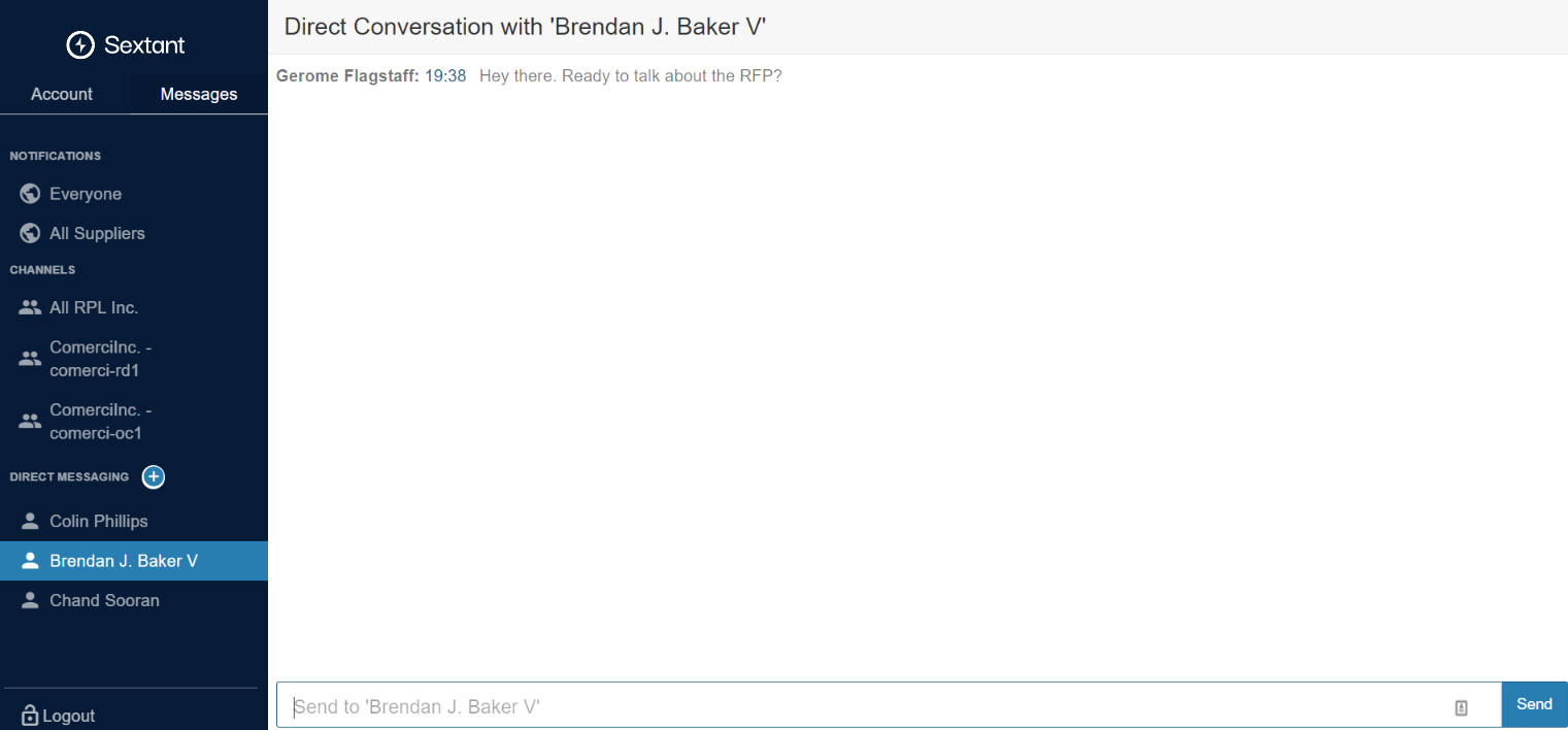 2. Navigate to the relevant conversation or start a new one by searching for an individual in the profiles page and clicking “Message,” finding their name in the left-hand menu, or clicking on the “+” sign to start a channel.