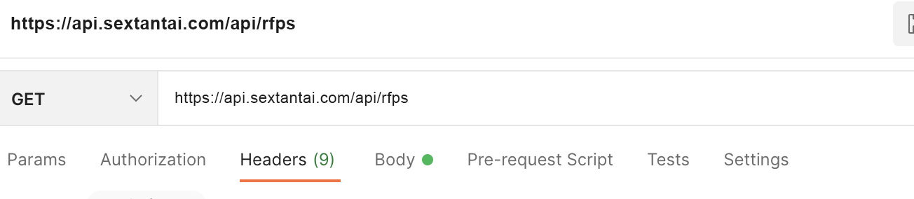 4. Change the POST to a GET with the following URL: http://api.getsextant.ai/api/rfps.